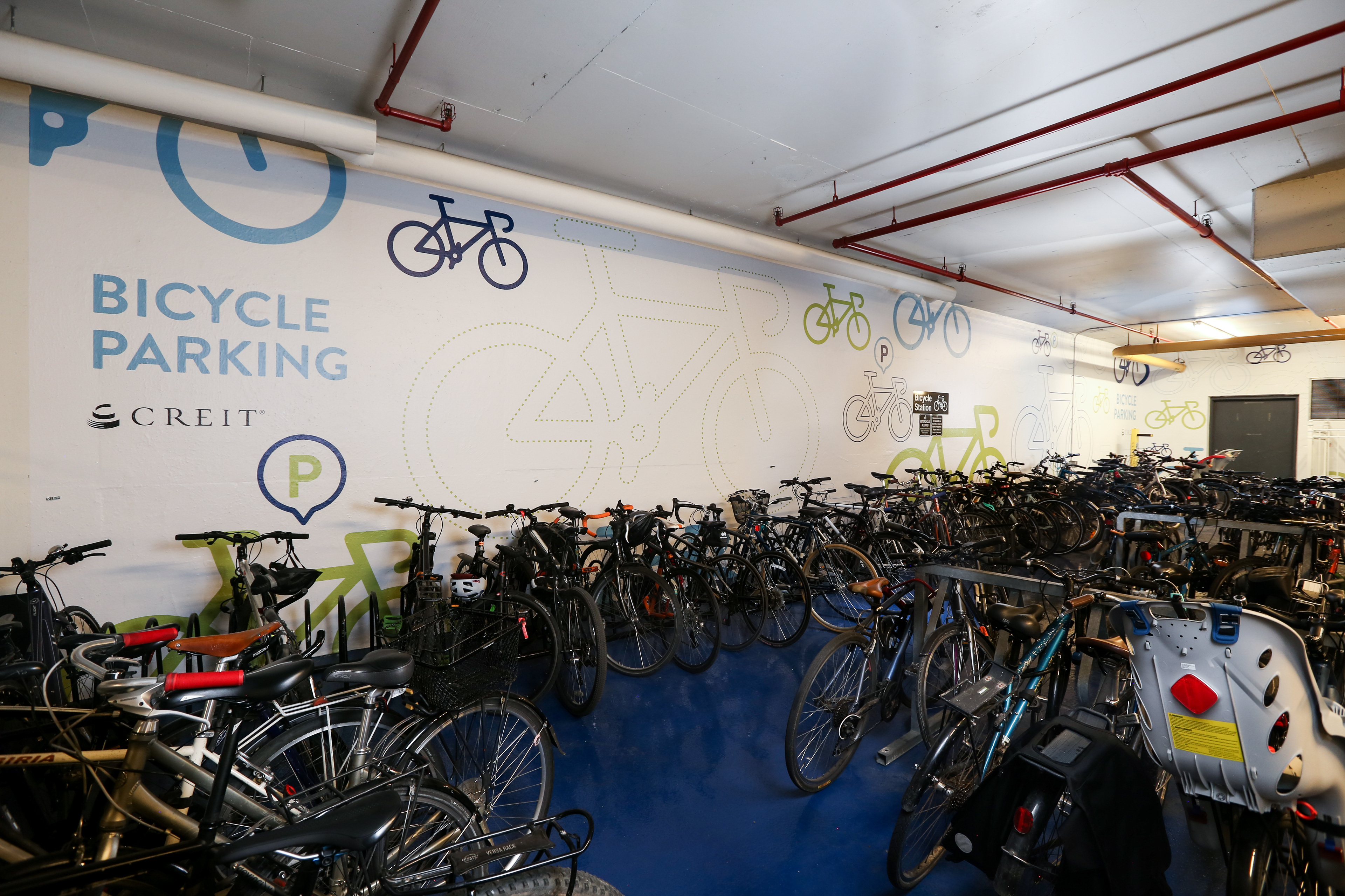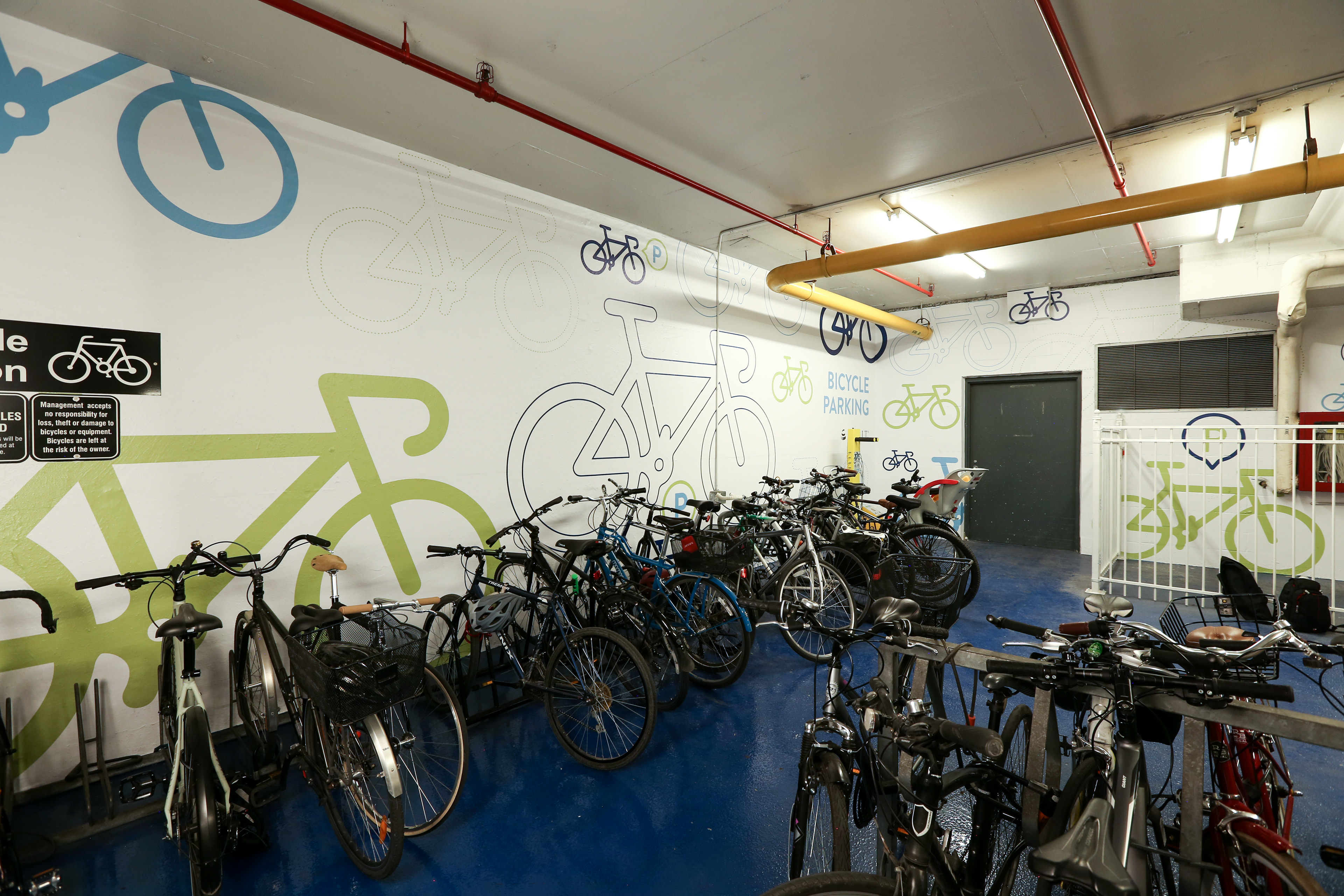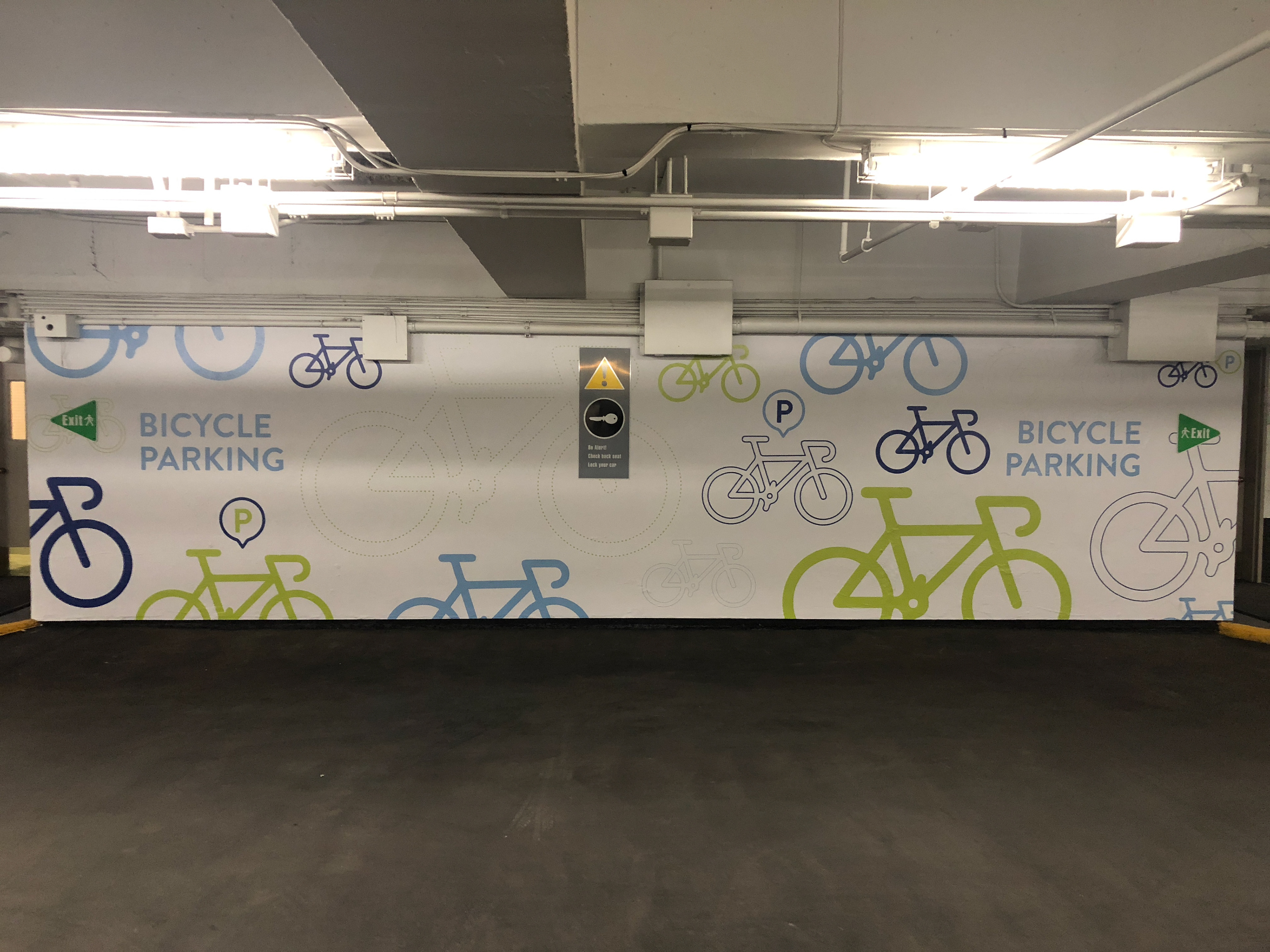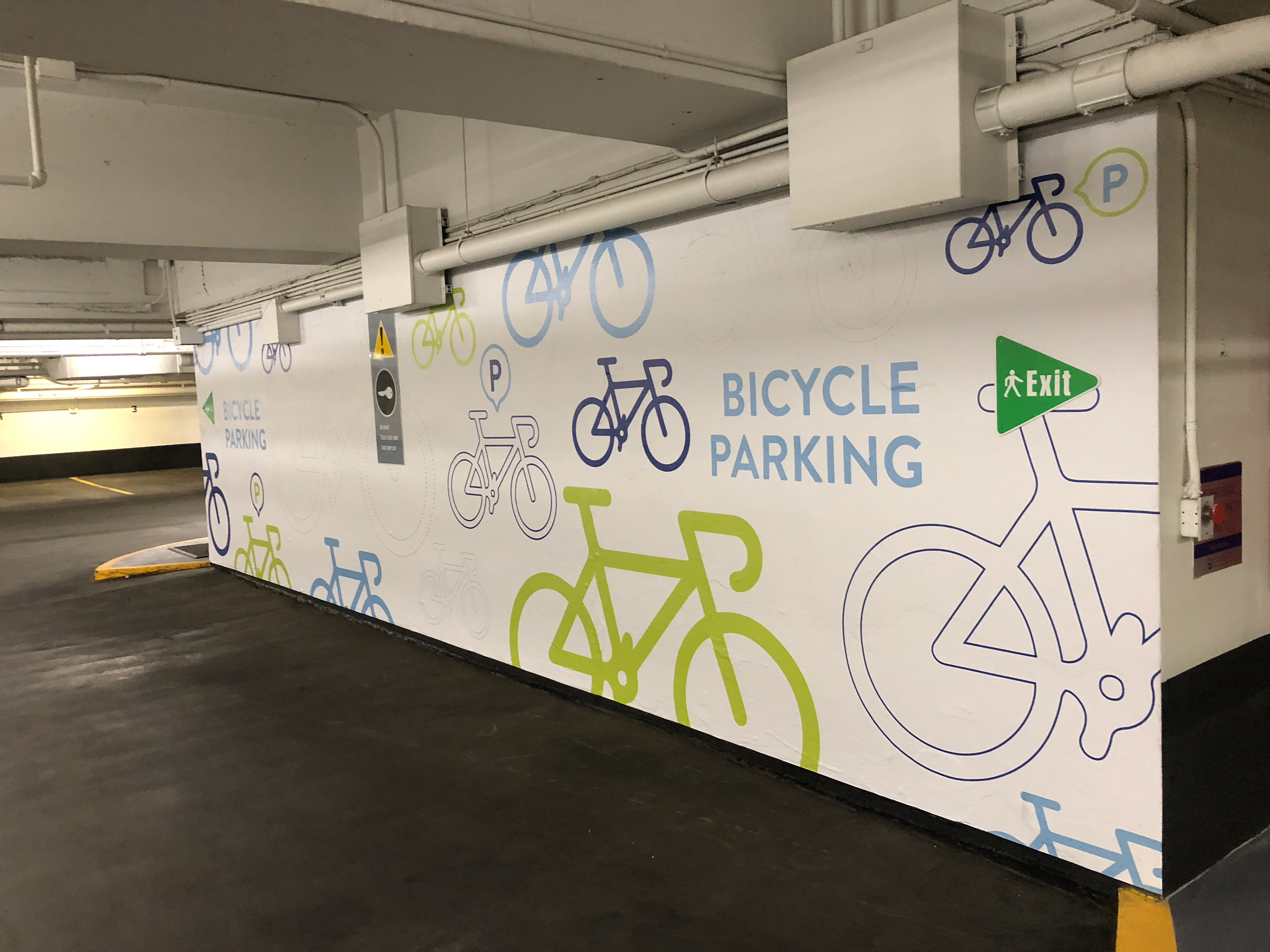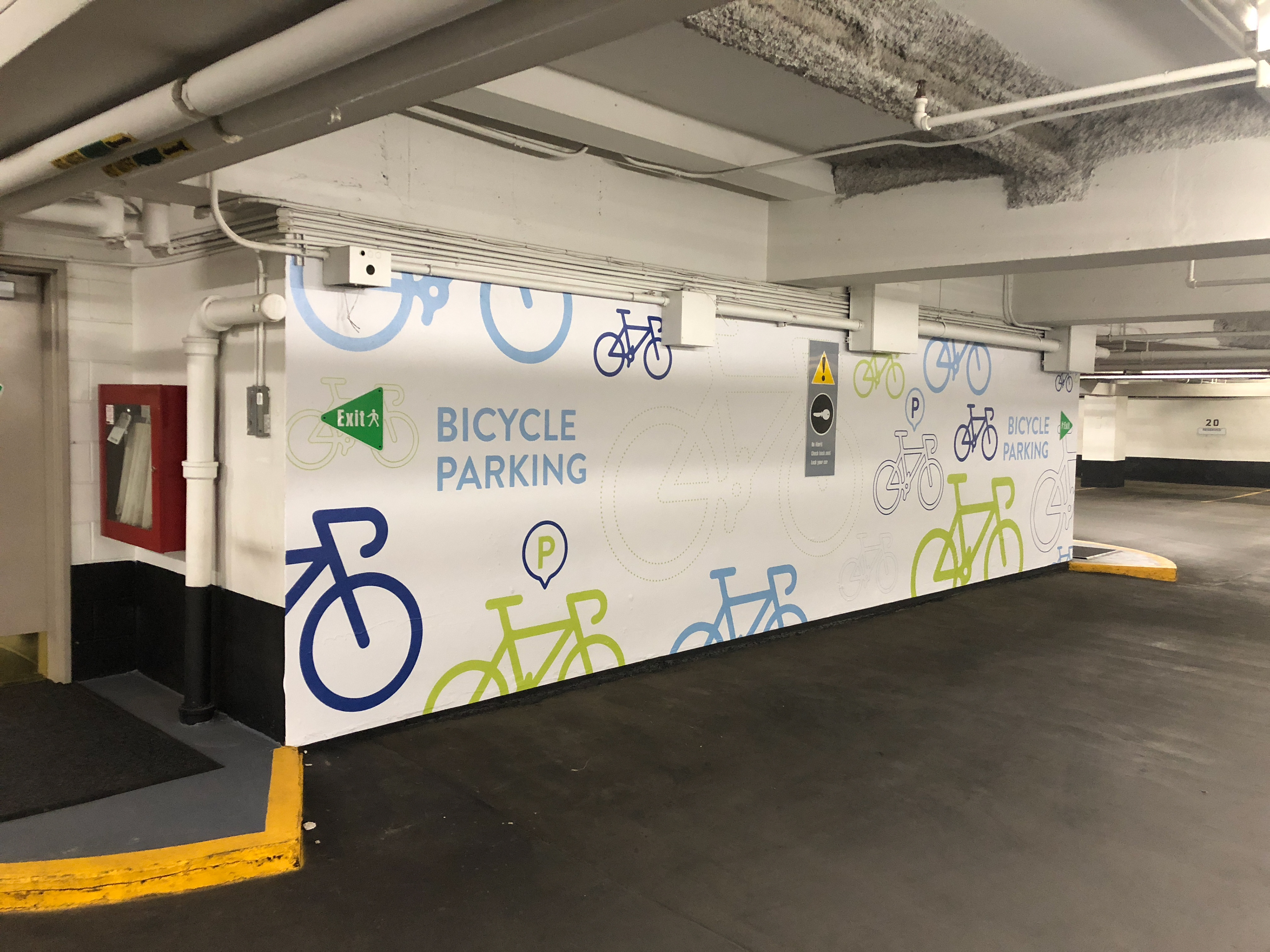 Designed, printed, and installed graphics for the bicycle storage area in the garage of 175 Bloor St W. The space was covered with fun and bright graphics in order to help make tenants more aware of and encourage use of this offering. Trifold Creative also researched statistics and benefits of riding your bike to work to include in the graphics as a way to further engage tenants with the space.